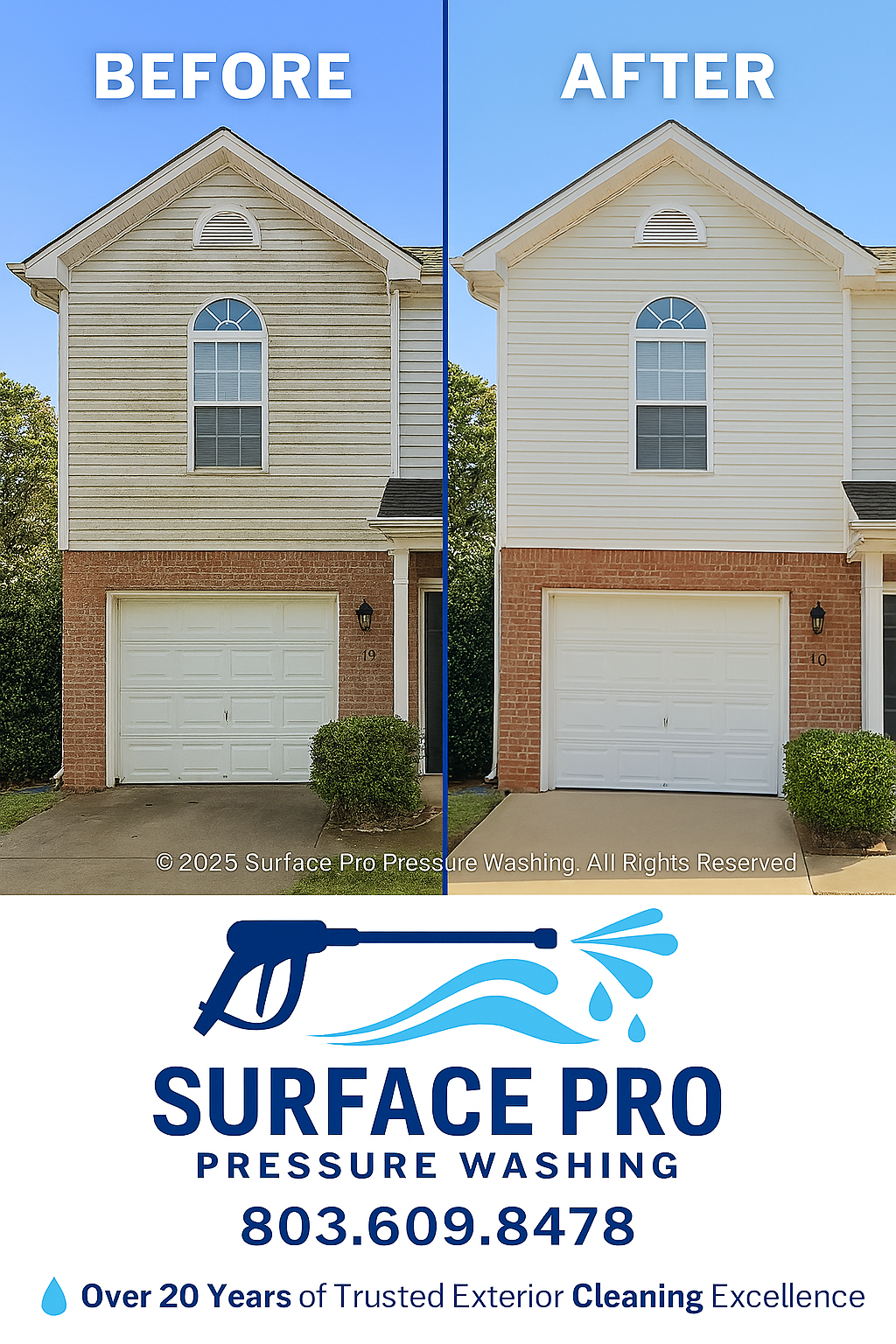 For over 20 years, we’ve been helping homeowners and businesses restore the beauty of their properties with safe, effective, and reliable exterior cleaning. From powerful pressure washing that blasts away years of dirt and grime to gentle soft washing that protects delicate surfaces while removing mold, mildew, and algae, we deliver results that make your property shine.